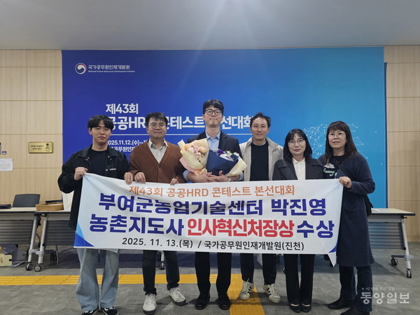 부여군이 공공 인재육성 분야에서 또 한 번 두각을 나타냈다. 부여군농업기술센터 박진영 지도사가 국가공무원인재개발원이 주관한 ‘43회 공공HRD 콘테스트’ 교수‧학습 분야에서 인사혁신처장상을 수상하며 주목을 받고 있다. 지난 농촌진흥공무원 강의기법 경연대회 우수상에 이어 연속 수상이라는 점에서 더욱 의미가 크다.