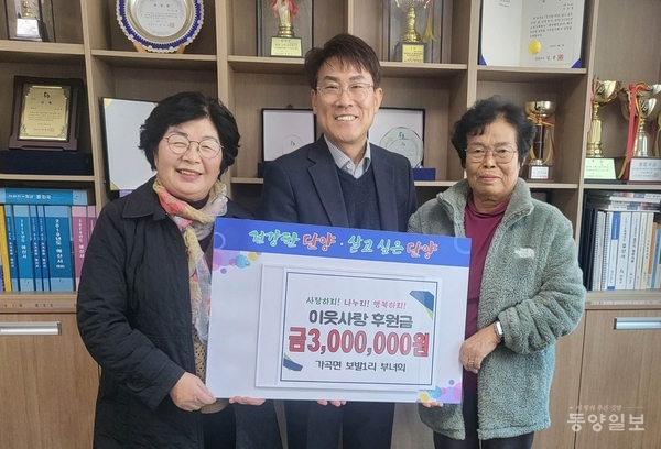 단양군 가곡면 보발1리 새마을부녀회(회장 안명숙)는 보발재 단풍철에 맞춰 운영한 ‘보발재 먹거리 장터’의 수익금 300만원을 가곡면 지역사회보장협의체(공공위원장 손문영)에 기탁했다. 부녀회는 지역사회 나눔 실천의 뜻을 더하고자 마련한 수익금 일부를 어려운 이웃을 위한 성금으로 전달했다.