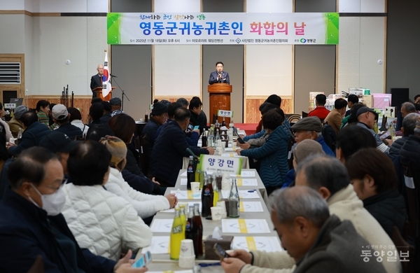 영동군이 18일 영동아모르아트웨딩컨벤션에서 귀농귀촌인들의 화합과 소통을 위한 ‘2025년 영동군 귀농귀촌인 화합행사’를 열었다.