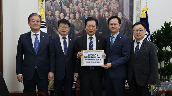 더불어민주당 소속 충북지역 국회의원 4명이 20일 국회에서 정청래 당대표를 만나 청주국제공항 민간항공기 전용 활주로 건설의 핵심 사업에 대한 건의문을 전달했다.