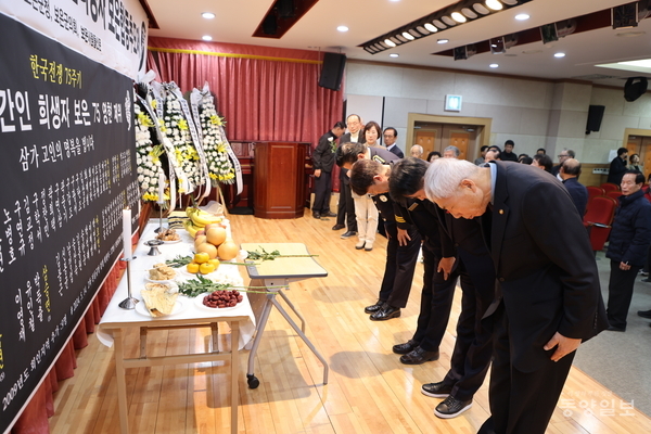 보은군이 19일 한국전쟁 당시 억울하게 희생된 보은 지역 민간인의 넋을 기리고 유족들의 아픔을 위로키 위한 ‘13회 한국전쟁 민간인희생자 보은합동추모제’를 봉행했다.