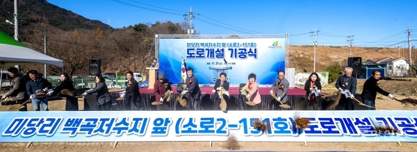 제천시는 봉양읍 미당리 백곡저수지 앞에서 ‘미당리 백곡저수지 앞(소로2-151호) 도로개설공사’기공식을 가졌다.