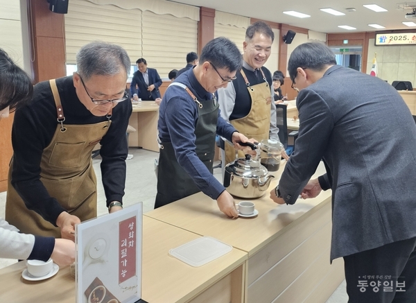 태영환교육장은 “쌀쌀해진 아침, 존중의 마음을 담아 나눈 쌍화차와 같이 모든 직원이 따뜻하게 화합하는 하루가 되길 바란다”며, “앞으로도 상호존중과 배려가 함께하는 즐거운 직장 분위기를 만들겠다”고 밝혔다. 영동 황의택 기자 missman8855@dynews.co.kr