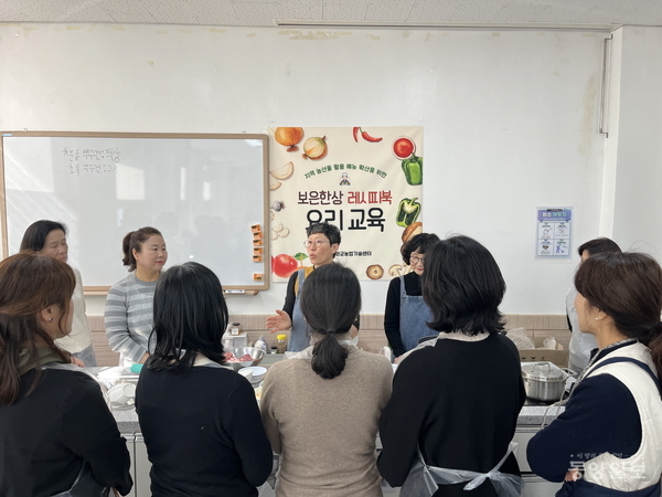 보은군농업기술센터(소장 김은희)가 21일 농업기술센터 식가공교육실에서 ‘보은한상 레시피북 활용 요리 실습교육’을 진행했다.
