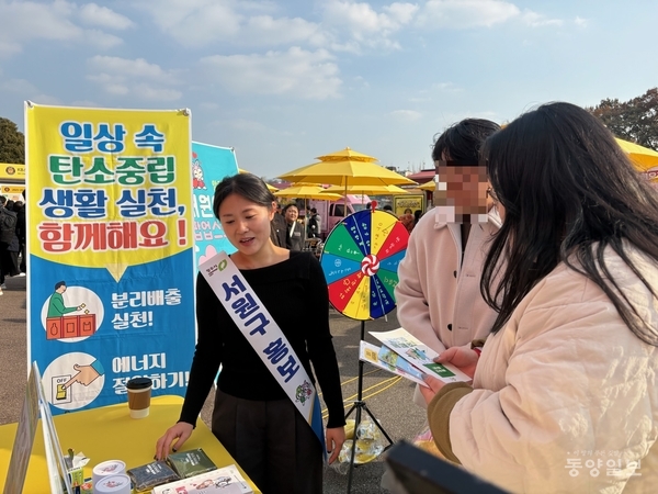 청주시 서원구는 지난 22일 청주실내체육관에서 열린 ‘청주 KB스타즈 여자프로농구 경기’ 현장에서 구정 홍보 팝업스토어를 열었다. 현장에서는 서원구가 추진하는 주요 시책과 행사 정보가 담긴 홍보판을 배치했다. 또 홍보 내용을 기반으로 한 퀴즈도 함께 진행해 시민 참여를 유도했다. 조창희 기자 changhee@dynews.co.kr
