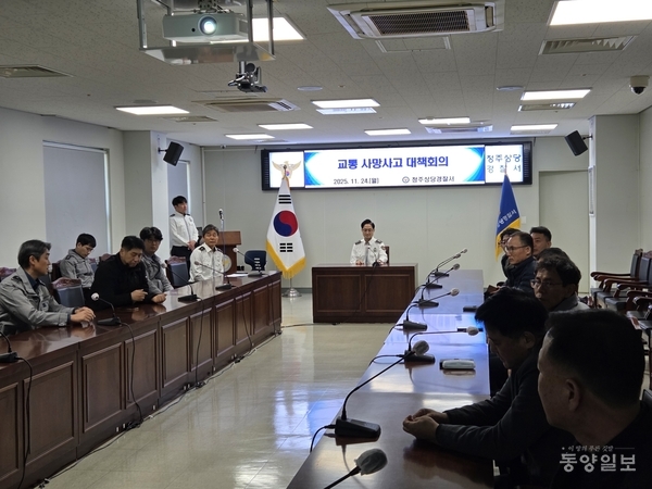청주상당경찰서(서장 변재철)는 24일 3층 소회의실에서 최근 잇따른 교통사망사고 대응 방안을 논의했다.