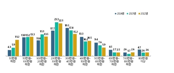 조사에 따르면 가구 월평균 소득은‘300만~400만원 미만’(19.5%)이 가장 높은 비중을 보였다.
