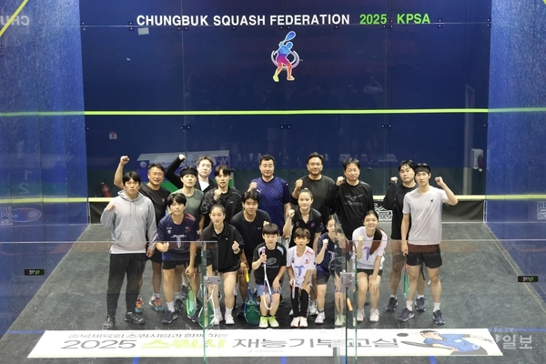 충북체육회 스쿼시팀이 지난 24일 청주스쿼시경기장에서 스포츠재능기부교실을 진행했다. 이날 국가대표 이민우를 비롯한 스쿼시팀은 도내 유망주 10여명을 대상으로 경기 운영 노하우, 자세 교정 등 기술을 전수했다. 김민환 기자 kgb5265@dynews.co.kr