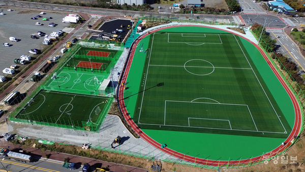 32억원이 투입된 야외체육시설은 성연면 왕정리 1만9168㎡에 축구장, 농구장, 족구장, 풋살장, 조깅트랙, 주차장 44면을 갖췄다.