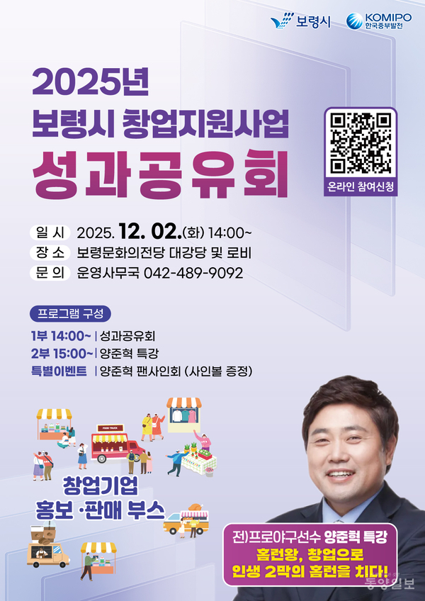시는 오는 12월 2일 오후 2시 보령문화의전당 대강당과 로비에서 2025년 창업지원사업 성과공유회를 개최한다.