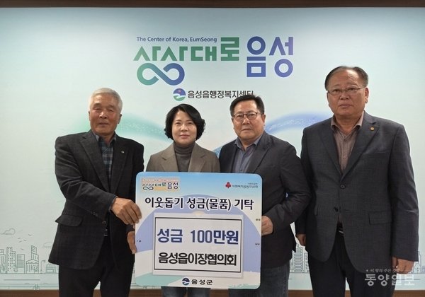 음성군 음성읍 이장협의회(회장 곽혁근)가 25일 “주민 복지 증진과 이웃을 보듬는데 사용해 달라”며 성금 100만원을 지역사회보장협의체(공동위원장 이재선, 이양희)에 기탁했다. 음성 심영선 기자 sun5335@dynews.co.kr