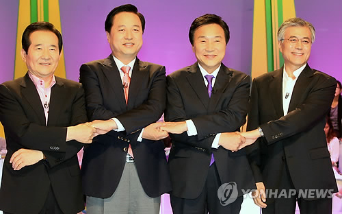 민주통합당 대선 경선주자들은 23일 방송3사 공동주최로 열린 첫 TV토론에서 초반 승기를 잡기 위해 불꽃 튀는 공방을 벌였다.