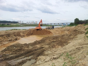 3일 공주시에 따르면 금강살리기 7공구 사업을 하면서 발생한 준설토 15만㎥를 시가 공개입찰을 통해 ㈜다모산업개발이 낙찰을 받아 준설토 반출하고 있다고 밝혔다. 그러나 이 업체는 당초 허가 물량보다 원석을 반출하지 못했다는 이유로 인근 하천에서 굴착 작업을 거쳐 골재를 채취, 반출하고 있다.