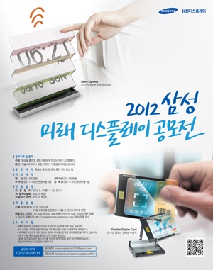 혁신적 디자인과 스마트한 기능으로 새로운 라이프 스타일을 창조할 신개념 미래 디스플레이 공모전인 이번 공모전 작품 참가신청은 이메일(samsungdisplay2012@gmail.com)로 10월31일까지 제출하면 된다.