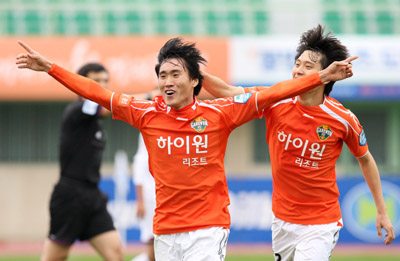 심영성은 4일 강릉종합경기장에서 열린 대전과의 정규리그 홈경기에서 1-0으로 앞서가던 전반 39분 지쿠의 힐패스로 돌려준 공을 오른발로 때려 골 그물을 흔들었다.