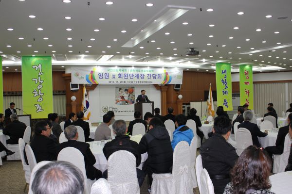 국민생활체육회·충청북도생활체육회 간담회 개최 2012-11-20 이삭 국민생활체육회와 충청북도생활체육회는 20일 청주명암타워컨벤션센터에서 유정복 국민생활체육회장과 권영규 사무총장, 지석모 스포츠 안전재단 사무총장, 김용명 충청북도생활체육회장 등 130명이 참석한 가운데 생활체육활성화를 위한 간담회를 개최했다.