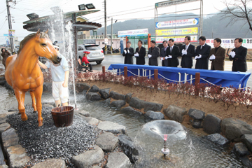 본래의 향토유적에 걸 맞는 연못을 만들고 말을 씻기던 형상의 조형물 설치로 과거의 역사적 유물을 시각화 시켜 좋은 평가를 얻고 있다.