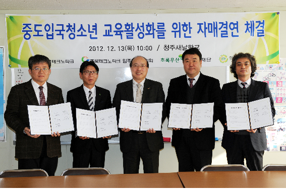 충북TP는 외국어 등 역량이 뛰어난 중도입국청소년들을 체계적으로 교육시켜 산업인재로 육성하기 위해 충북TP 입주기업협의회(회장 이종태), 어린이재단 충북지역본부(본부장 한전복), 봉사단체 ‘나도람’(회장 이영석), 청주새날학교와 자매결연을 체결하고 지속적으로 협력해 갈 예정이다.