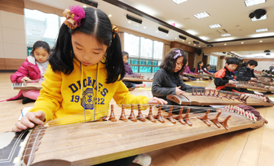 “전통 국악기 연주 재밌어요” 2013-01-14 임동빈 14일 충북학생교육문화원에서 열린 ‘겨울방학 체험학습 한마당’에서 참여한 학생들이 가야금 등 다양한 전통 국악기 체험을 하고 있다. <사진/임동빈>