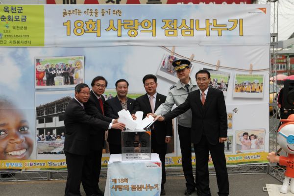국내외 굶주린 이웃을 돕기 위한 ‘18회 사랑의 점심나누기 순회 모금행사’가 15일 오후 2시부터 농협 옥천군지부 광장에서 열렸다.