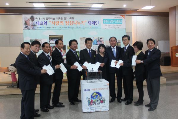 동양일보와 CJB 청주방송, 월드비전 충북본부가 공동 주최한 열두 번째 사랑의 점심 나누기 순회모금 행사가 29일 청주 상당구에서 아름다운 릴레이를 이어갔다.