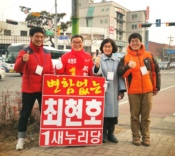 (동양일보 지영수 기자) 새누리당 최현호 (청주 흥덕갑) 예비후보 가족들의 열성적인 선거운동이 눈길을 끈다.