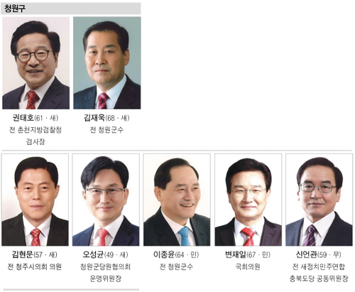 청주시의회 3선 의원을 지낸 김현문(57) 전 시의원도 새누리당 예비후보군에 이름을 올렸다. 더민주당에서는 변 의원이 4선 도전에 나선 가운데 같은 당 소속 이종윤(63) 전 청원군수가 일찌감치 총선 도전 의사를 밝혀 당내 경선이 불가피해졌다.