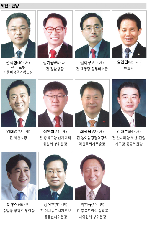 민선 3~4기 제천시를 이끈 엄태영(58) 전 시장과 국가 고위직(2급) 공무원을 지낸 권석창(49) 전 익산지방국토관리청장이 예비후보에 이름을 올렸다.