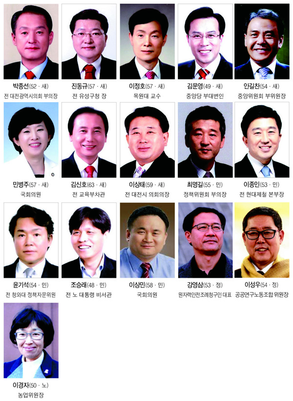 정의당에선 강영삼(53) 유성원자력안전조례청구인대표와 이성우(54) 전국공공연구노동조합 위원장 등 2명이다. 이경자(50) 노동당 농업위원장도 도전장을 내밀었다.