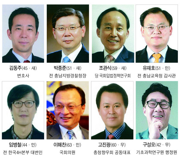 고진광(60) 충청향우회 중앙회 공동대표, 구성모(42) 기초과학연구원 선임행정원 등은 무소속 예비후보 등록을 한 상태다.