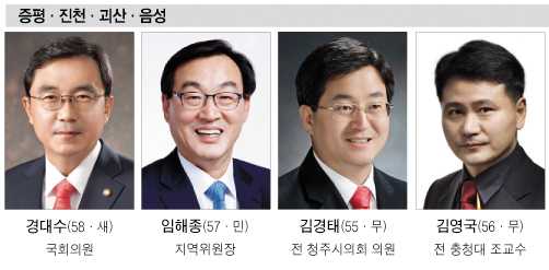 (괴산=동양일보 하은숙 기자)충북 중부4군(증평·진천·괴산·음성)은 도·농 복합지역으로 4개 지역이 한 선거구로 이뤄져 있어 판세를 예측하기 어려운 지역 중 하나다. 중부4군은 18대 총선에서 야당이 의원직을 차지했고 지난 선거에선 새누리당 경대수(57) 의원이 당선됐다.