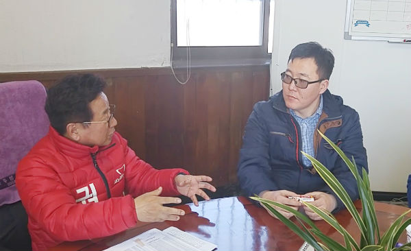 (동양일보 지영수 기자) 새누리당 권태호(청주 청원) 예비후보는 1일 내덕동 선거사무소를 찾은 몽골지방자치행정협회 바트게렐 사무총장과 청주·몽골 간 교류협력 방안을 논의했다.