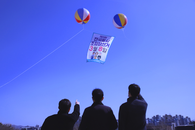 충북도선거관리위원회는 8일 실시하는 전국동시조합장선거 투표참여 독려를 위해 6일 청주체육관 상공에 투표참여를 독려하는 애드벌룬을 띄웠다. [동양일보 이정규 기자]충북도선거관리위원회는 8일 실시하는 전국동시조합장선거 투표참여 독려를 위해 6일 청주체육관 상공에 투표참여를 독려하는 애드벌룬을 띄웠다.
