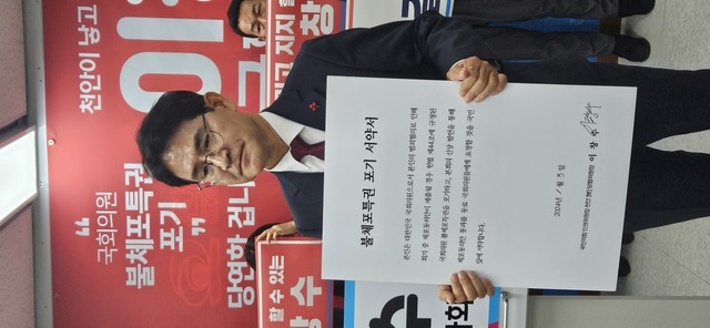 이어 “국회의원 불체포특권 전면 포기, 당보다도 국민을 위한 선민후사의 정신은 정치인이 늘 지녀야 할 마음가짐”이라며 불체포특권 포기 서약을 했다.