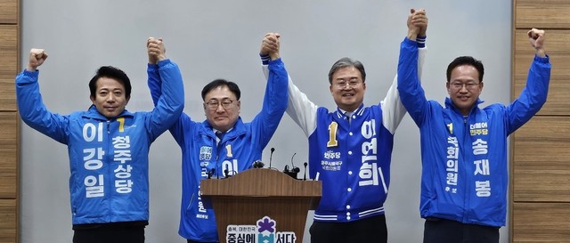 이들은 “청주시민과 함께 민주당은 새인물, 새바람으로 4월 10일 반드시 승리하겠다"고 강조했다. 박승룡 기자 bbhh0101@dynews.co.kr