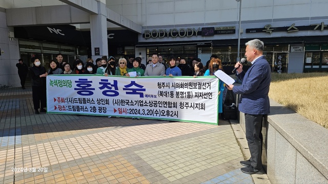 [동양일보 박은수 기자]22대 국회의원 선거와 함께 실시되는 청주시의원 재보궐선거에 출마하는 홍청숙 청주시의회의원 자선거구 예비후보을 향해 드림플러스상인회, 사단법인한국소기업소상공인연합회 청주시지회가 지지를 선언했다.