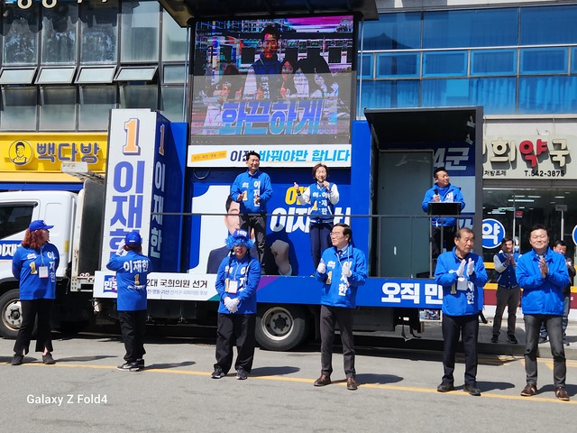 더불어민주당 이재한 후보는 오전 11시 30분 "윤석열 정부의 무능과 여당 현역의원의 오만함을 심판해 달라"고 호소했다.