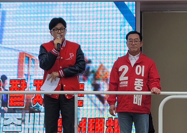 이어 “3선 중진인 이종배 후보는 충주~서울을 출퇴근하며 충주와 대한민국 발전에 핵심 역할을 하는 일등 일꾼”이라며 “이종배 후보와 한동훈이 국민의힘 공약을 완수하겠다”라며 지지를 호소했다.