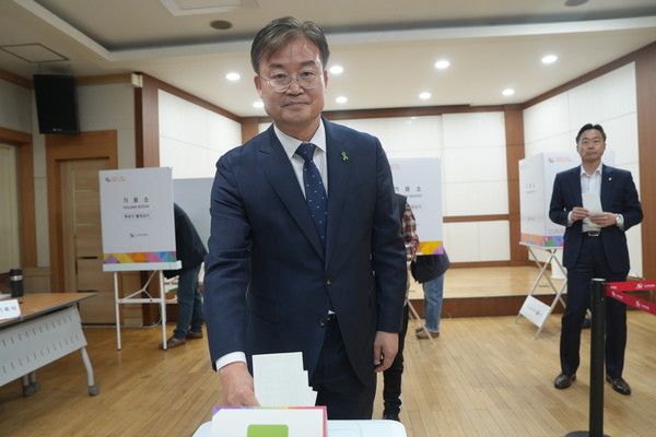 제22대 국회의원선거 사전투표 첫날인 5일 이연희 더불어민주당 청주흥덕 국회의원 후보가 복대1동 행정복지센터에 마련된 사전투표소에서 투표를 하고 있다. 유명종 기자 bell@dynews.co.kr 5일 복대1동 사전투표소 앞에서 청주흥덕 이연희 후보가 자신의 딸과 기념사진을 찍고 있다.