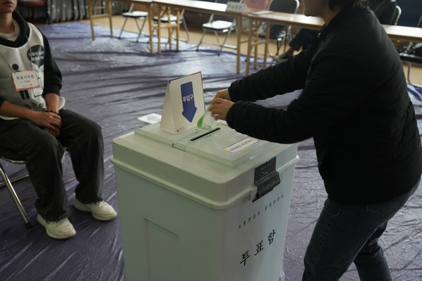 10일 오후 청주 청원구 내덕동 내덕노인복지관 1층에 마련된 투표소에서 시민들이 투표에 참여하고 있다. 유명종 기자 bell@dynews.co.kr