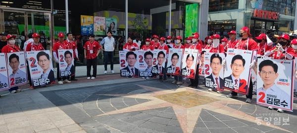 21대 대통령선거 국민의힘 충북도당 선거대책위원회가 13일 청주시 성안길에서 대선 출정식을 하고 있다. 사진 손상훈 기자