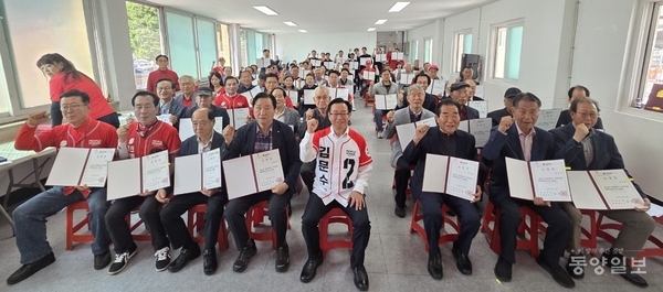또 25개 읍·면·동 조직위원장단과 경제발전위원단, 상생화합·교육화합위원·시민홍보소통·청년본부·여성봉사·복지화합본부·농업경영본부·산업건설위원·문화예술위원·대외협력·안보자문위원단 등 22개 핵심위원회 위원들이 임명장을 받았다.