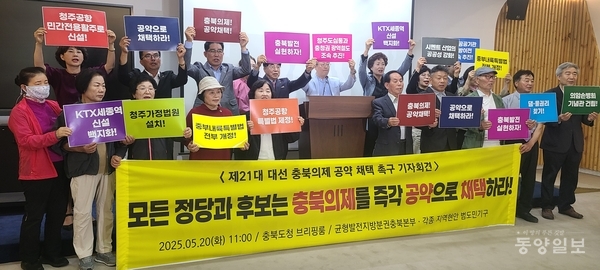이들 단체는 이날 충북도청에서 기자회견을 열어 “이재명·김문수·이준석 후보는 21대 대선 충북 의제를 즉각 공약으로 채택하라”고 촉구했다.