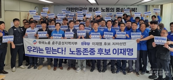 한국노총 충주음성지역지부가 28일 21대 대통령선거에서 더불어민주당 이재명 후보 지지를 공식 선언했다.