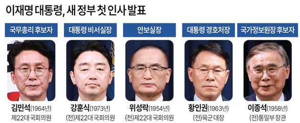 이 대통령은 이날 서울 용산 대통령실 브리핑룸에서 직접 첫 인선을 발표하면서 "국민에 대한 충직함과 책임, 실력을 갖춘 인사들과 국민주권정부의 새 출발을 시작한다"고 말했다.